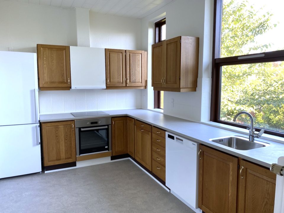 Lejligheden har større køkken med plads til spiseplads. Køkken har nyere hårde hvidevare. Badeværelse med vaskemaskine og separat toilet.